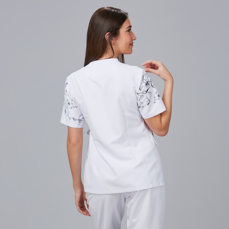 Il design incrociato e i dettagli eleganti della camicetta ALHELI vi permettono di distinguervi nel settore della bellezza, proiettando un'immagine di professionalità e raffinatezza.