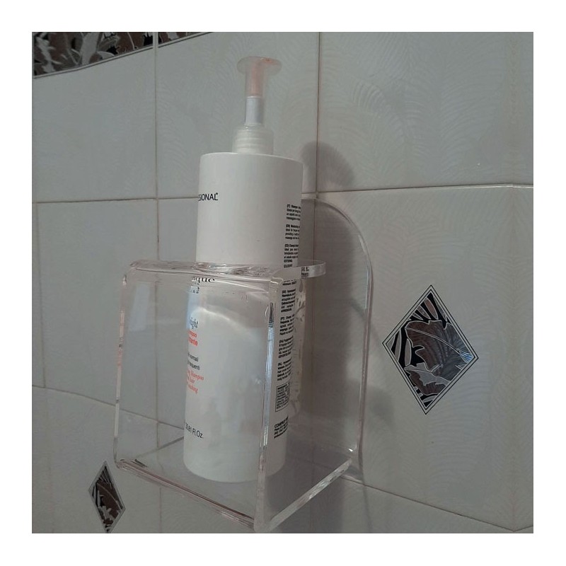 Porta Dosatore in plexiglass utilizzabile sia a parete che da appoggio. Utile da supporto a saponi o igienizzanti.